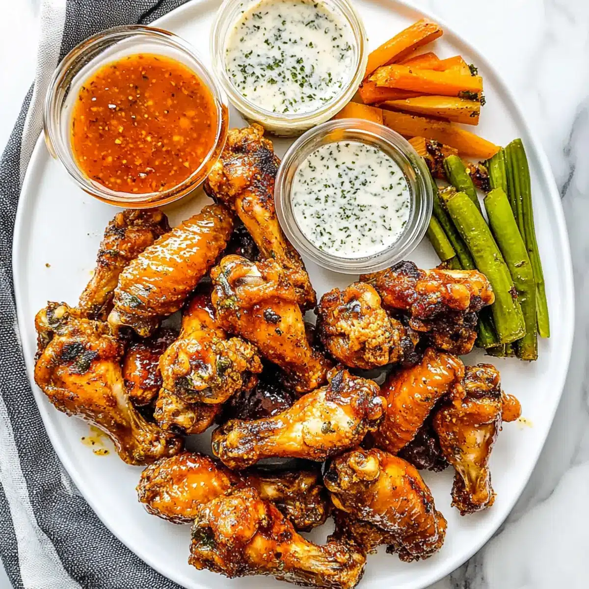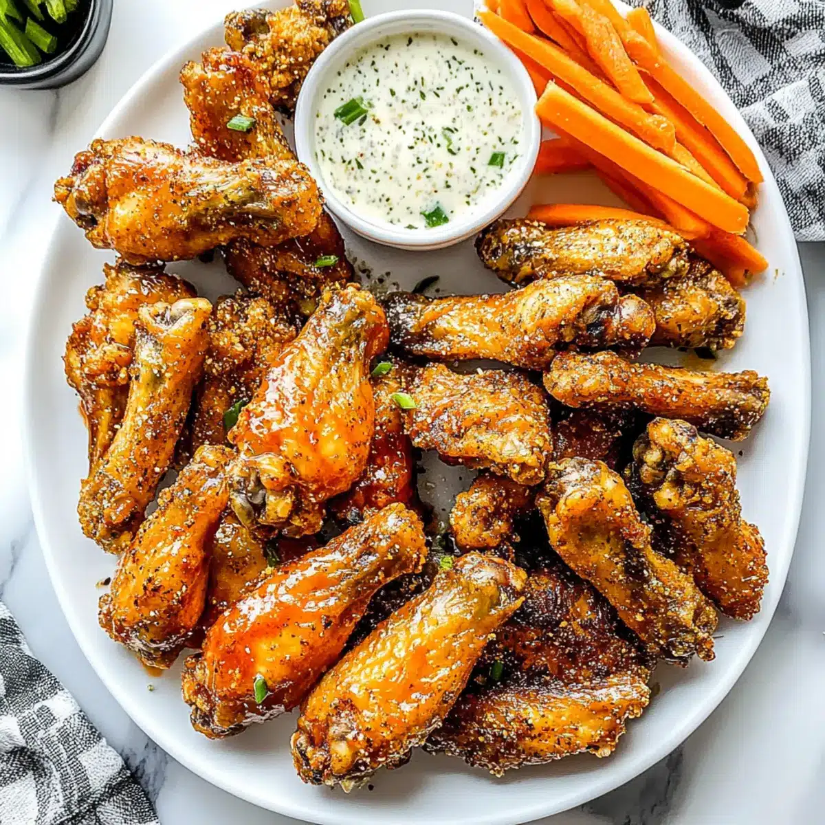 Crispy Garlic & Herb: For a flavor twist, add Italian herbs like oregano and thyme to your baking powder mixture. This brings an aromatic twist that elevates the garlic flavor in your wings.