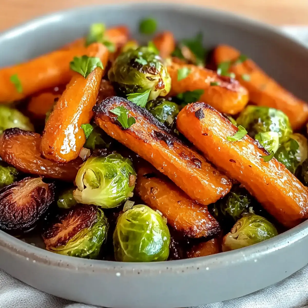 Crispy Maple Glazed Carrots and Brussel Sprouts Delight