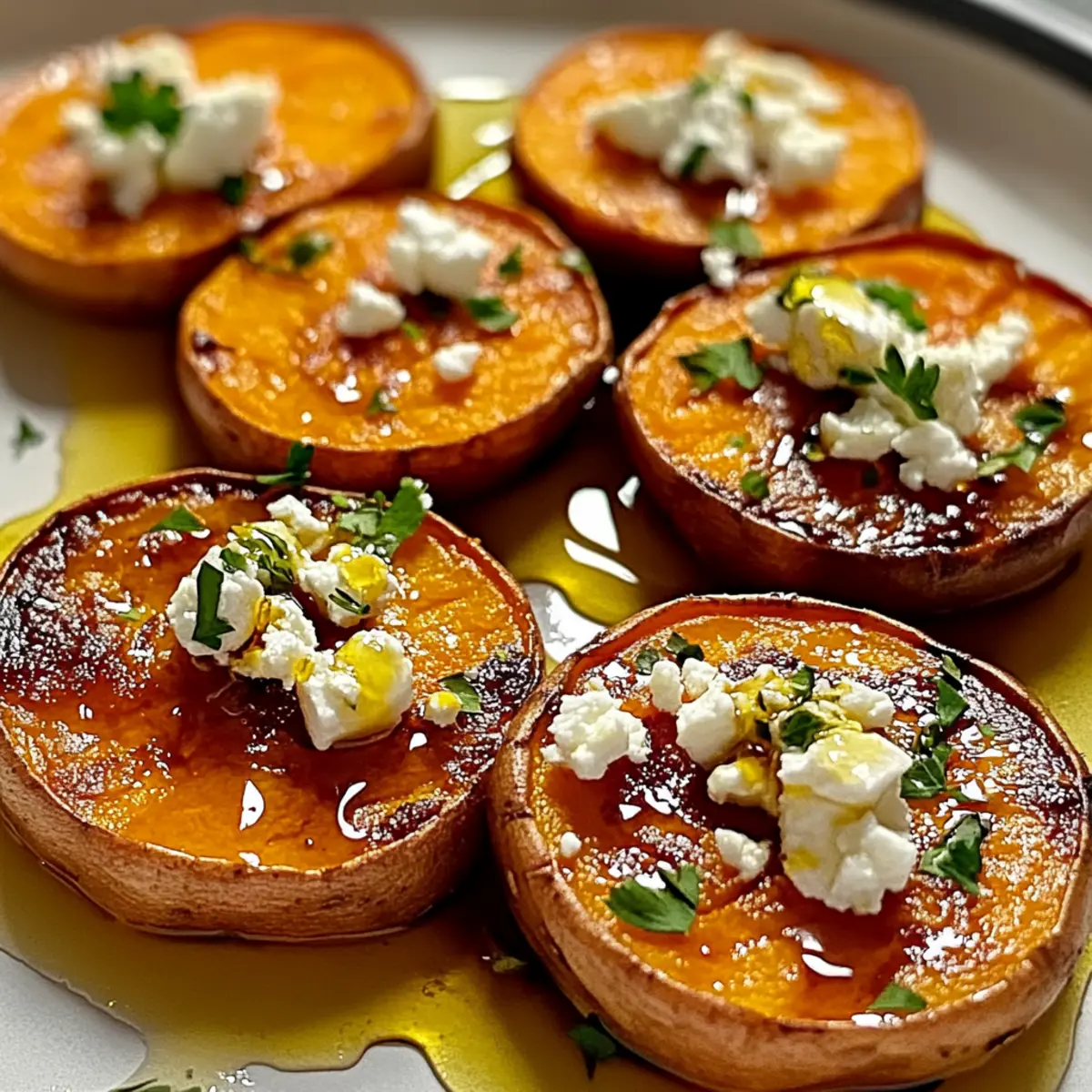 Delicious Roasted Sweet Potato Rounds with Honey & Feta