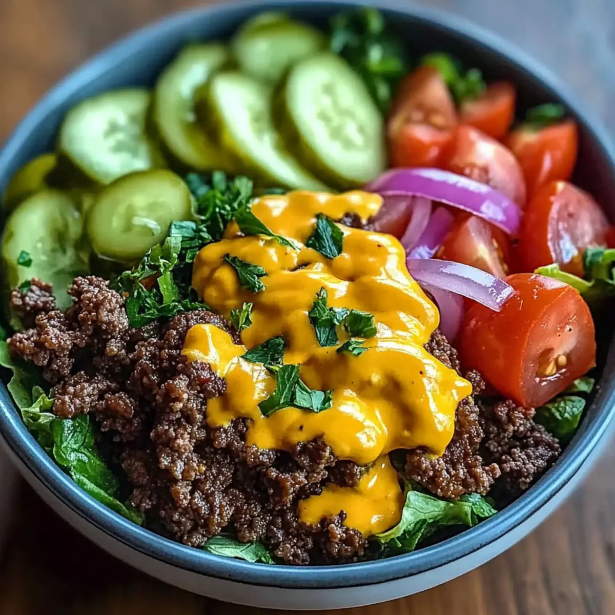 Customize the Sauce: Experiment with your sauce by adding more mustard or a splash of hot sauce for an exciting twist that personalizes your Cheeseburger Bowls.