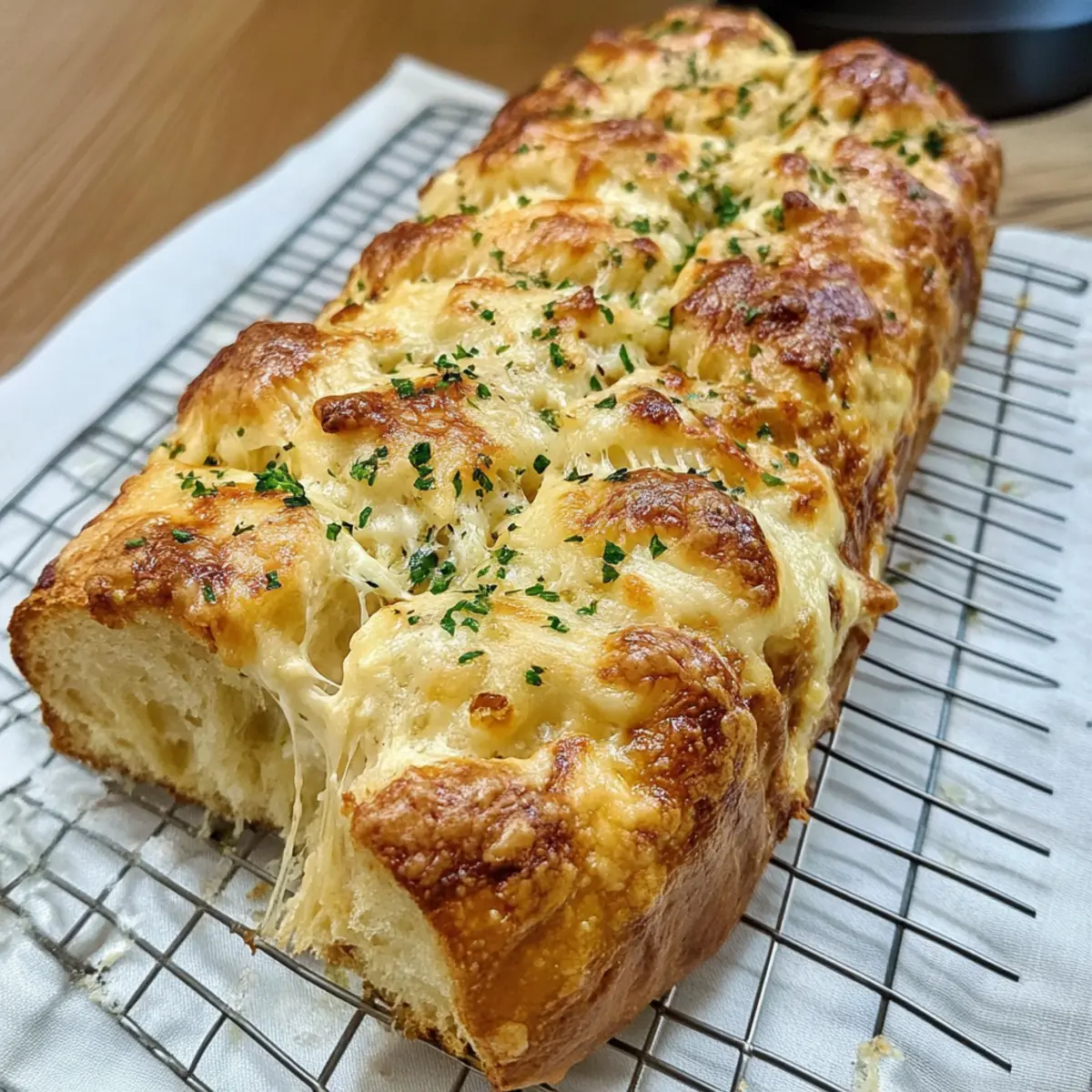 These Cheesy Pull-Apart Garlic Bread delights are perfect for busy home cooks looking to save time without sacrificing flavor! You can prepare the dough up to 24 hours in advance; simply follow the first rise, then refrigerate the dough instead of letting it rise at room temperature. When you’re ready to bake, take it out and let it come to room temperature for about 30 minutes before shaping and filling. Additionally, you can make the garlic butter ahead of time and store it in the fridge—this way, all you have to do is assemble and bake when it’s time to serve. By prepping ahead, you’ll enjoy a deliciously gooey bread just as satisfying as if you made it fresh that day!