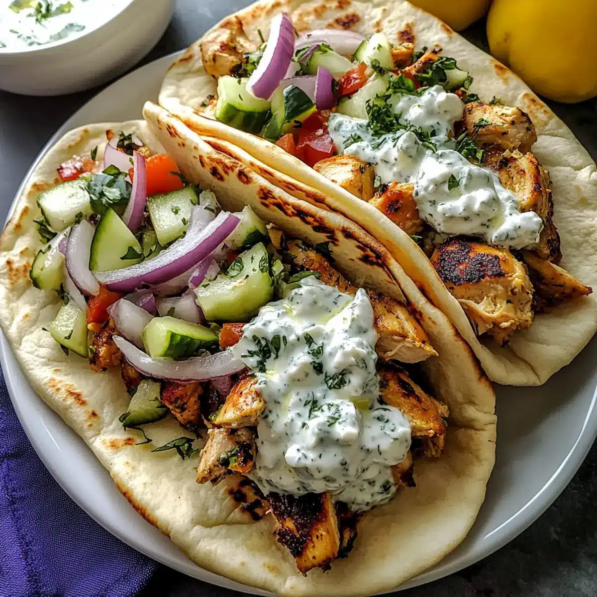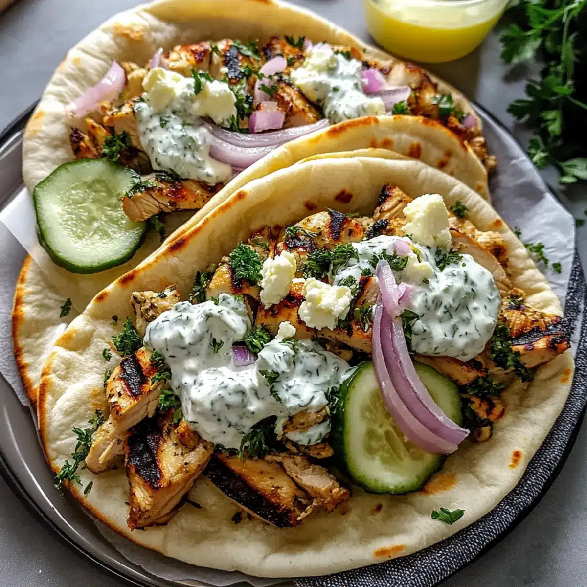 Lamb Alternative: Replace chicken with grilled lamb for a robust flavor reminiscent of traditional Greek gyros. The rich taste combines beautifully with tzatziki.