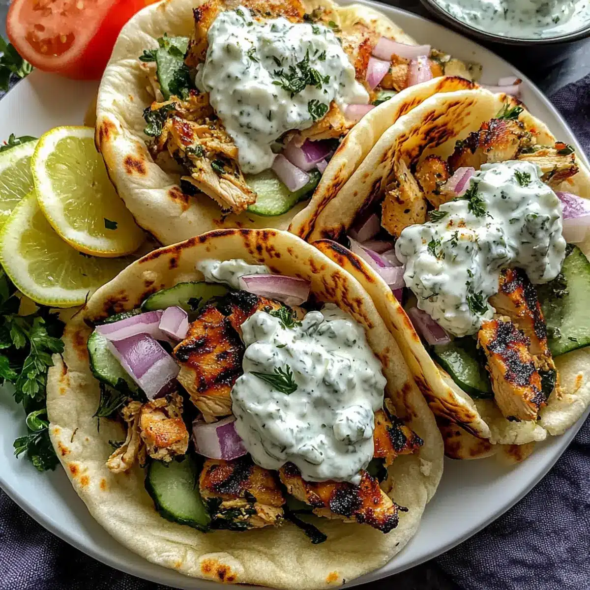 The aroma of spices and sizzling chicken brings me right back to a sun-drenched Mediterranean terrace, where the world feels a bit more vibrant. These Mediterranean Chicken Gyros with Creamy Feta Tzatziki transport you to that blissful setting, right from your kitchen. What I adore about this recipe is not only its quick prep time, making it a perfect solution for busy weeknights, but also the way it beautifully showcases fresh ingredients and homemade flavors that can outshine any takeout meal. Every bite combines juicy, grilled chicken wrapped in warm pita, vibrant vegetables, and a velvety tzatziki that ties it all together—a true crowd-pleaser guaranteed to impress your family or guests. Ready to bring a taste of the Mediterranean home? Let’s dive into this delightful recipe!