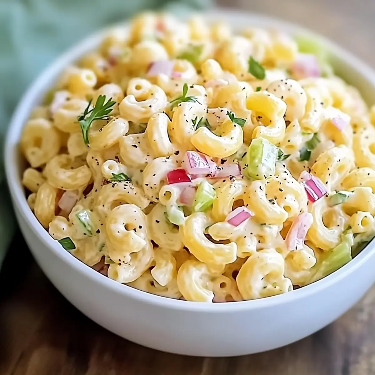 Very! One common issue is overcooking the pasta, which can lead to mushiness. Be sure to cook the elbow macaroni al dente and rinse it under cold water after draining. Another tip is to soak your red onions beforehand to reduce their sharpness; this enhances the salad’s overall flavor.