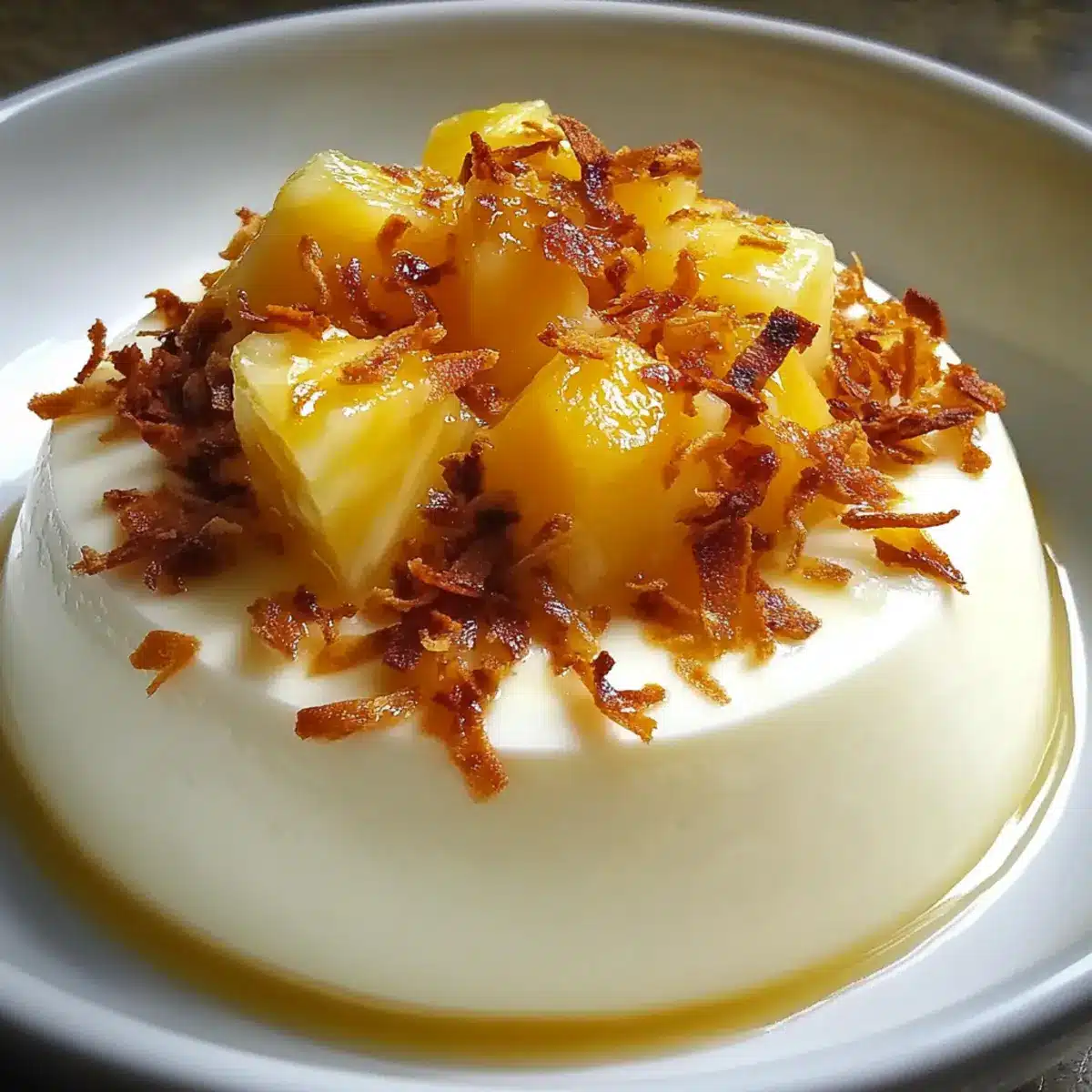 Preparing the Coconut Cream Panna Cotta with Pineapple ahead of time is a fantastic way to save time on busy days! You can make the panna cotta itself up to 24 hours in advance; just follow the initial steps and refrigerate it until you’re ready to serve. Additionally, you can cut the fresh pineapple and store it in an airtight container in the fridge for up to 3 days. This keeps the topping fresh and vibrant, while allowing for easy assembly. When you’re ready to impress your guests, simply invert the panna cotta onto serving plates, top with the prepared pineapple, and enjoy restaurant-quality flavors without the last-minute stress!