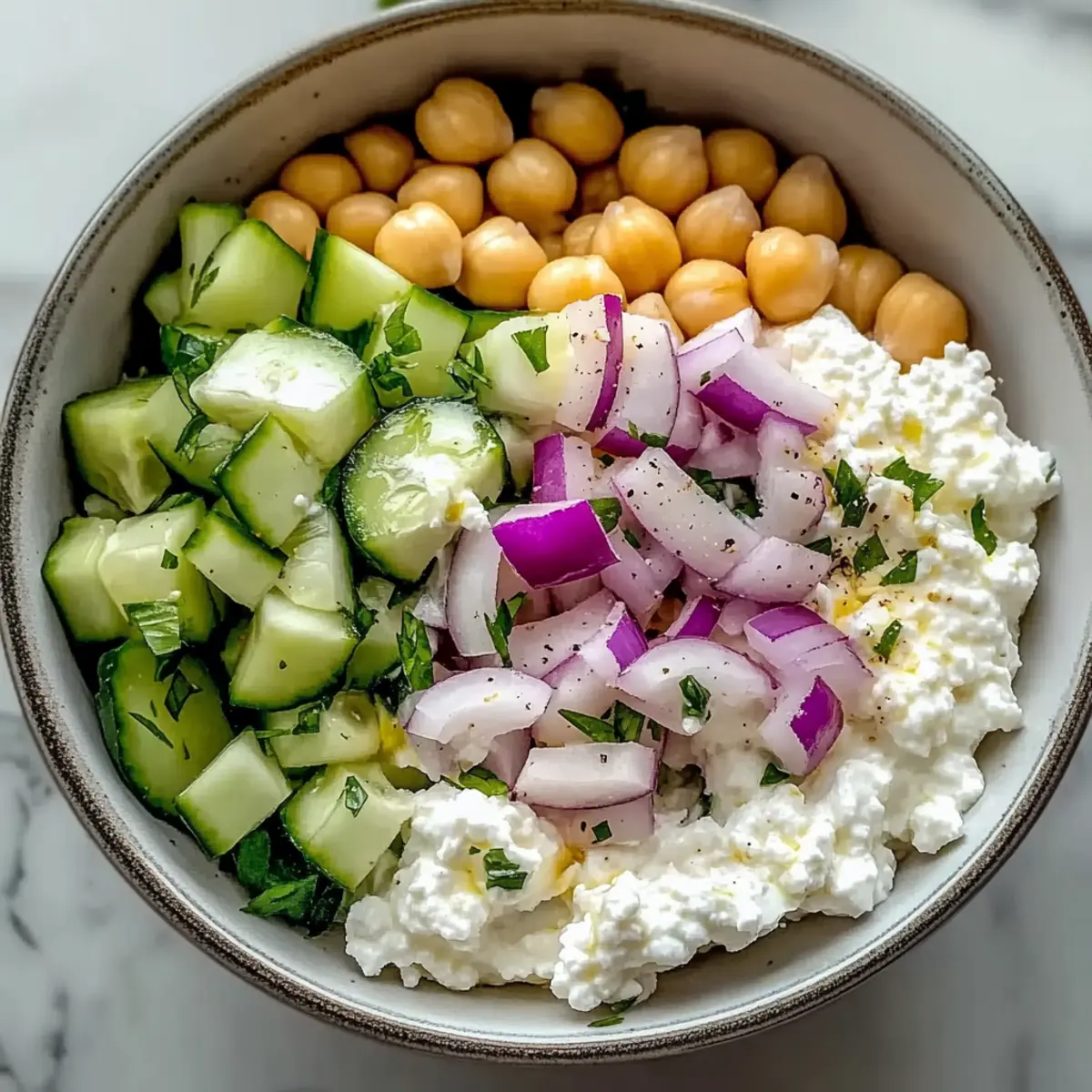 Healthy Pleasure: This Cottage Cheese and Chickpea Salad is a guilt-free delight, packed with protein and fiber to keep you energized.