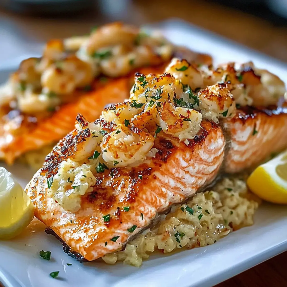 • Get ready to crave this delicious Crab Shrimp Stuffed Salmon!