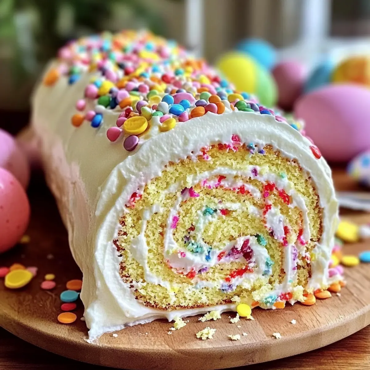 Decorative Creativity: Feel free to use various toppings like nuts or dried fruit instead of sprinkles, adding personal flair to your Easter Cake Roll.