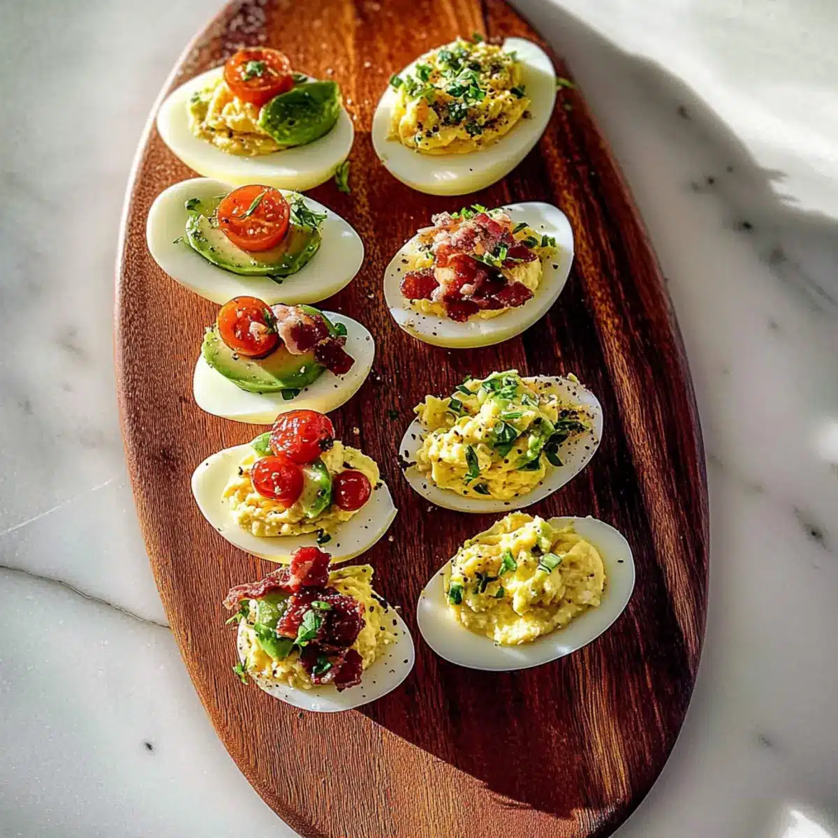 The more the merrier! For a stunning display, arrange your filled eggs on a large serving board, and garnish with fresh herbs like chives or parsley. You can even create a color palette by using different toppings for each egg, making your Egg Flight visually appealing and deliciously inviting.
