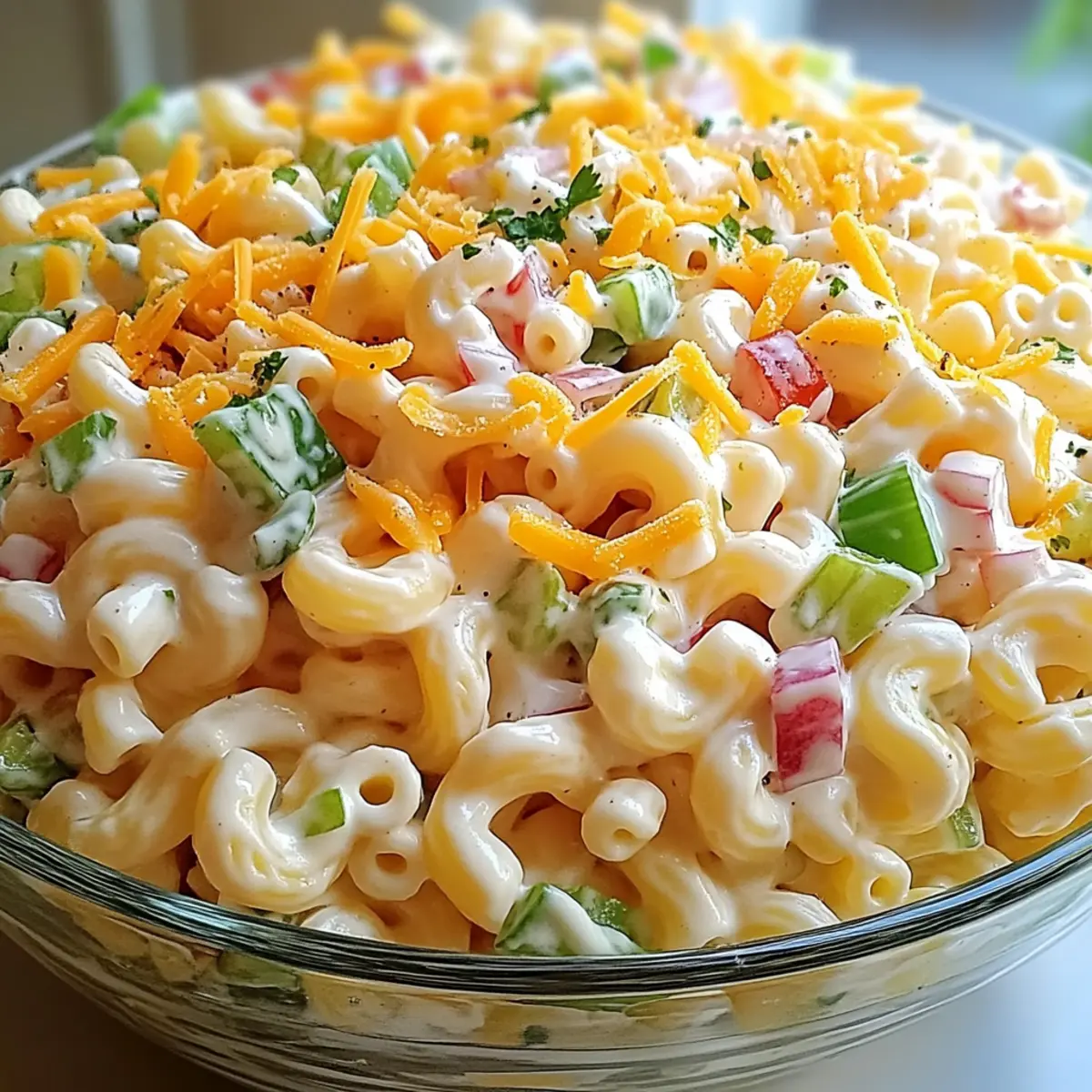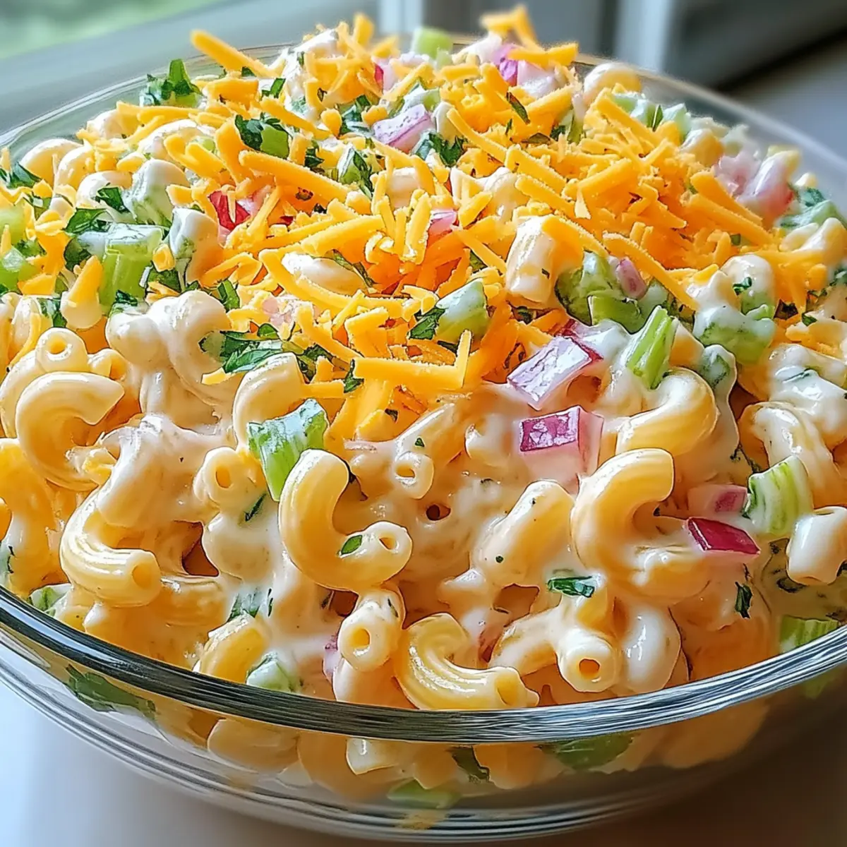 Bold Flavors: The Guy Fieri Macaroni Salad bursts with a creamy mix of mayonnaise and sour cream, layered with vibrant veggies for that perfect crunch.