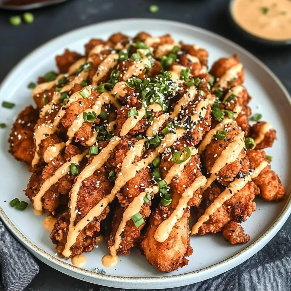 Once all the chicken is fried, it’s time to serve your mouthwatering Crispy Hawaiian Mochiko Chicken! Drizzle with spicy mayo and sprinkle some furikake for an extra burst of flavor. This dish pairs wonderfully with jasmine rice or grilled pineapple, bringing that island touch to your dinner table. Enjoy!