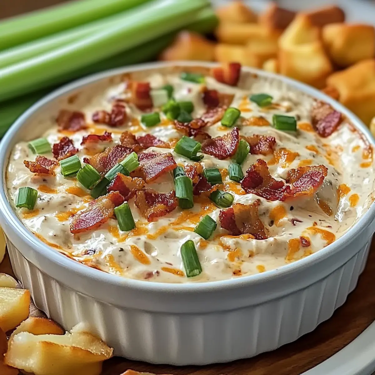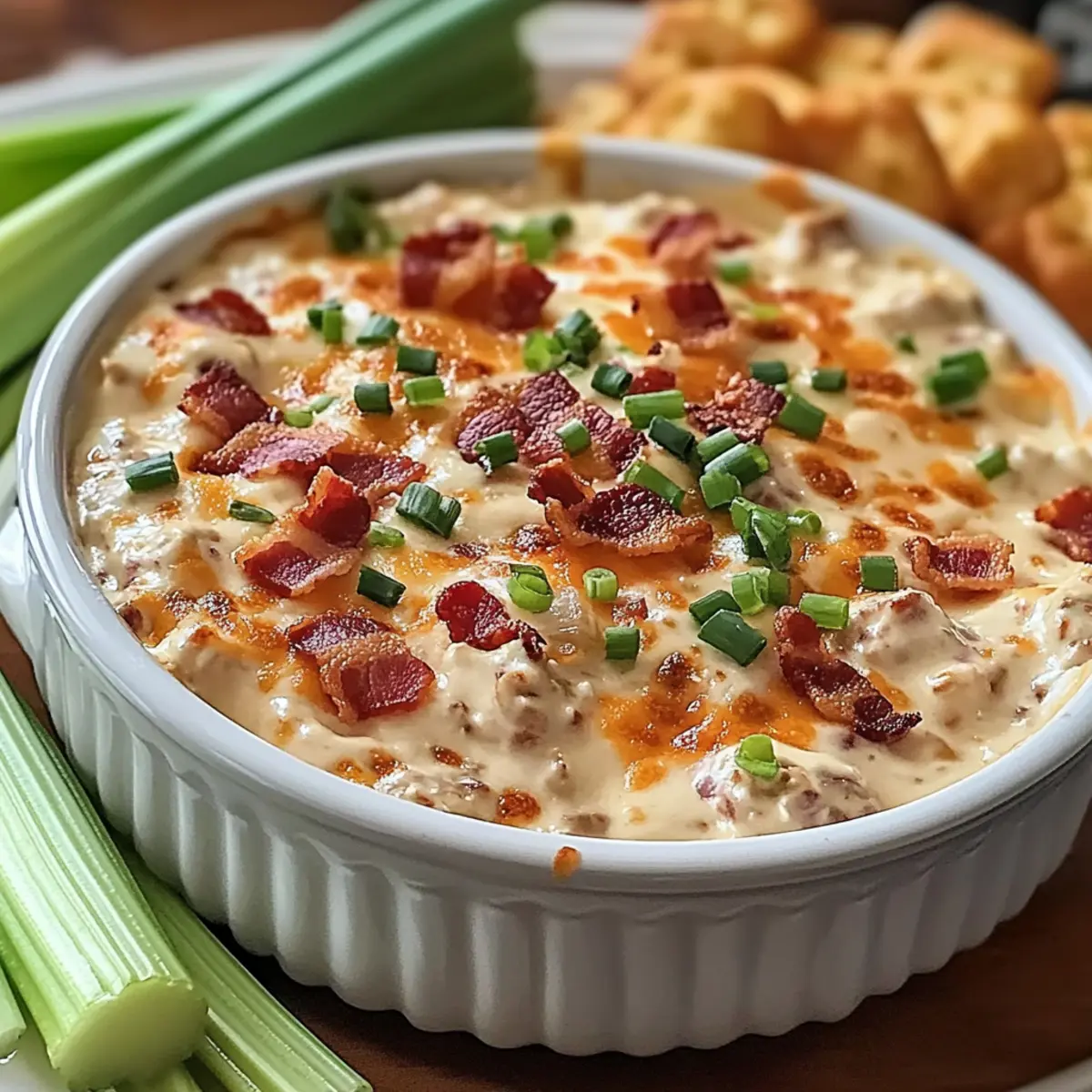 - Let the dip cool for about 5 minutes before serving. Garnish with additional chopped green onions or crumbled bacon.