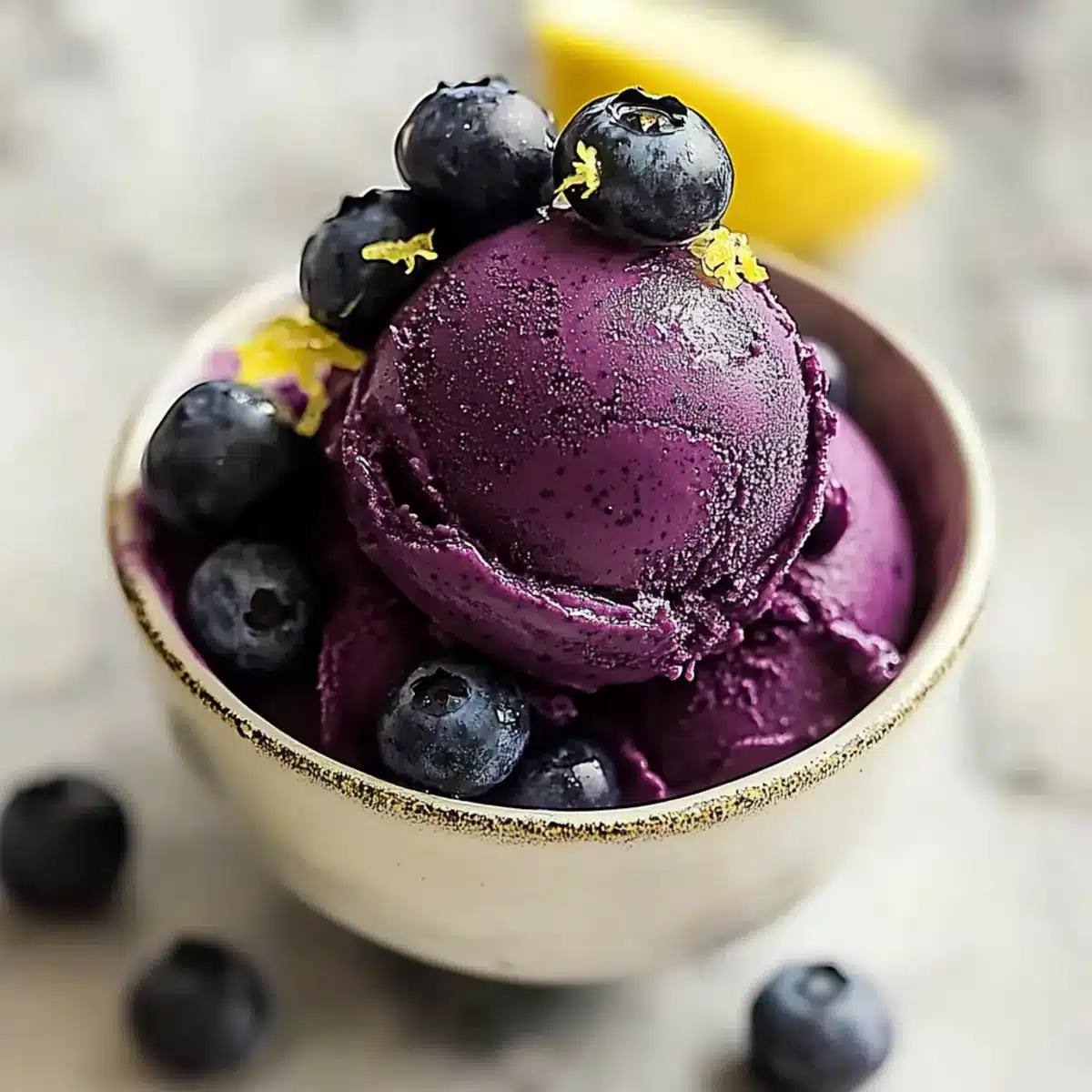 After the freezing period, remove the sorbet from the freezer. Let it sit at room temperature for about 5-10 minutes before scooping to soften slightly. Serve the sorbet in bowls or glasses, and feel free to garnish with extra blueberries or a sprinkle of lemon zest for an eye-catching finish that highlights the freshness of your creation!