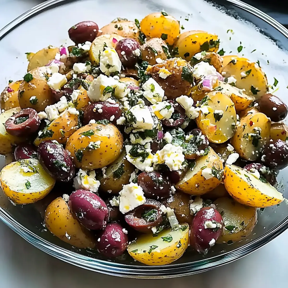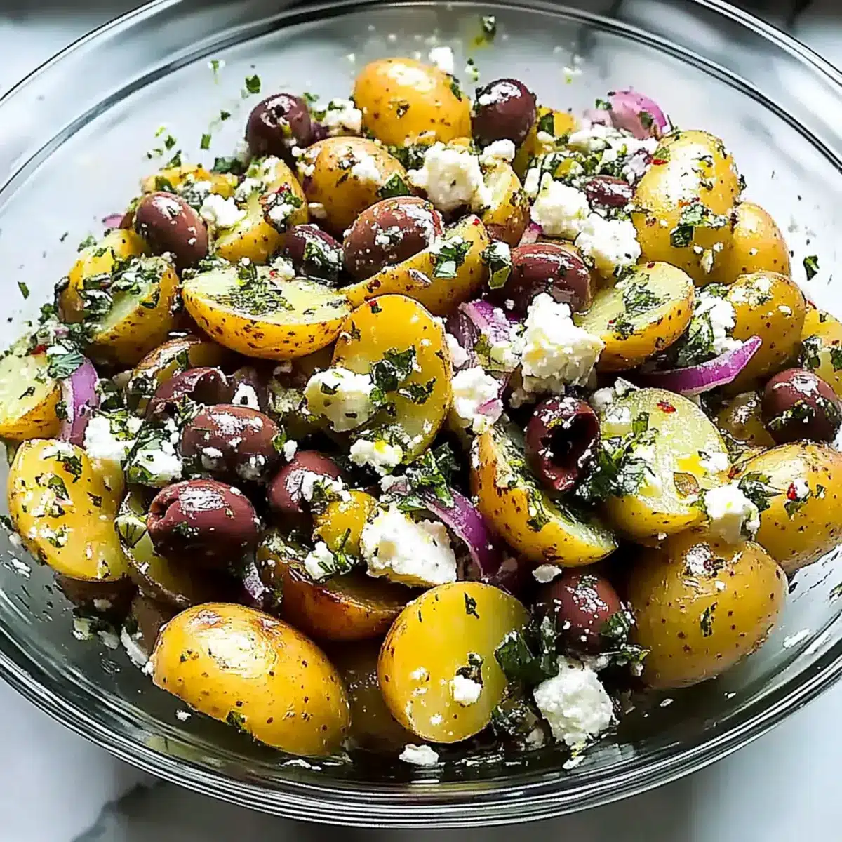 Freshness shines through every ingredient, with tender potatoes meeting vibrant herbs and tangy feta. Comfort food redefined, this Mediterranean Olive Greek Potato Salad brings warmth and joy to every gathering. Easy preparation means that even novice cooks can whip it up in no time, while its crowd-pleasing appeal will have everyone coming back for seconds. Plus, it’s a perfect accompaniment to grilled meats or even enjoyed on its own! Don’t forget to pair it with a delightful Fall Harvest Salad for a complete meal experience!