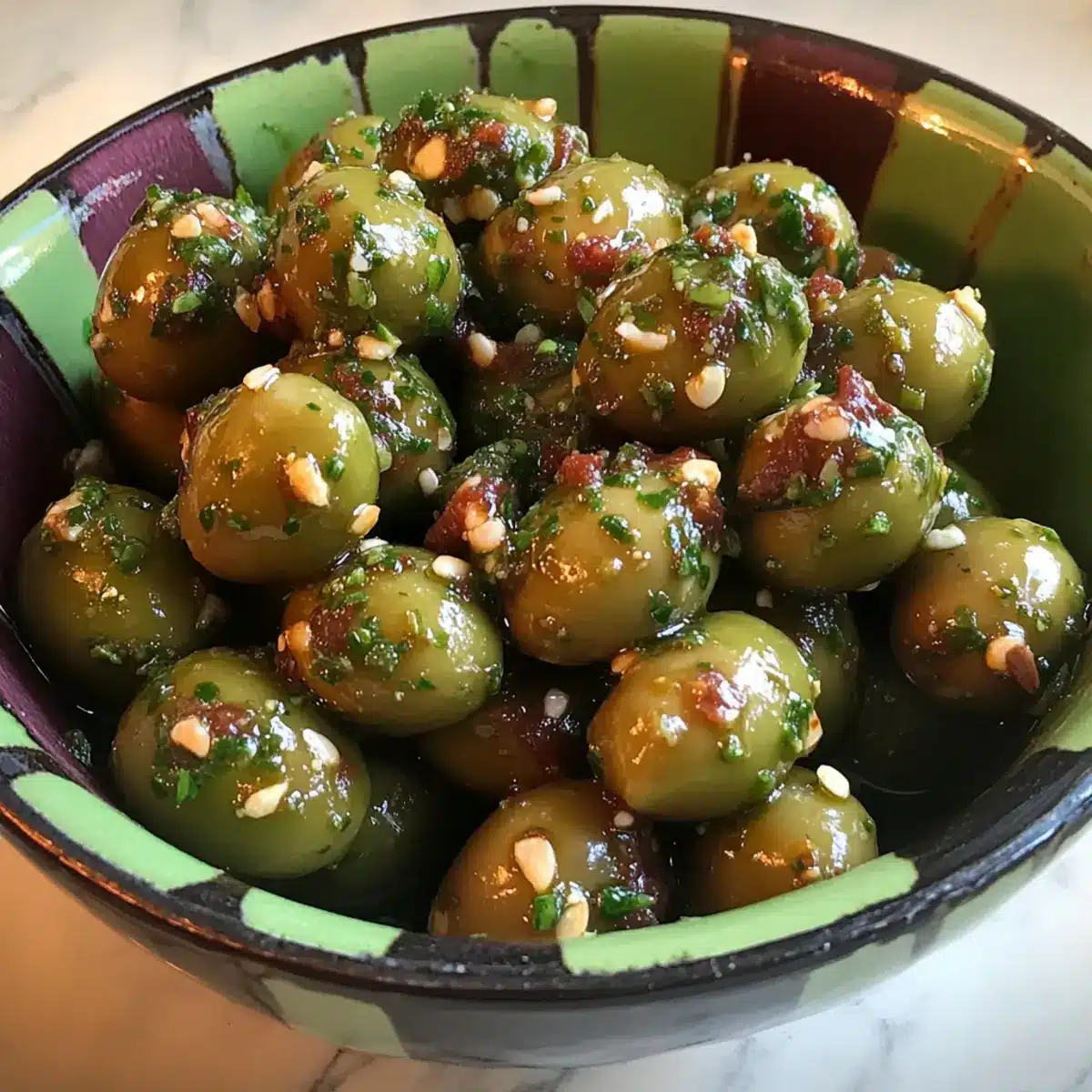 Nutty Finish: Sprinkle toasted pine nuts or walnuts over the top before serving. The nutty crunch enhances the overall texture and complements the olives beautifully.