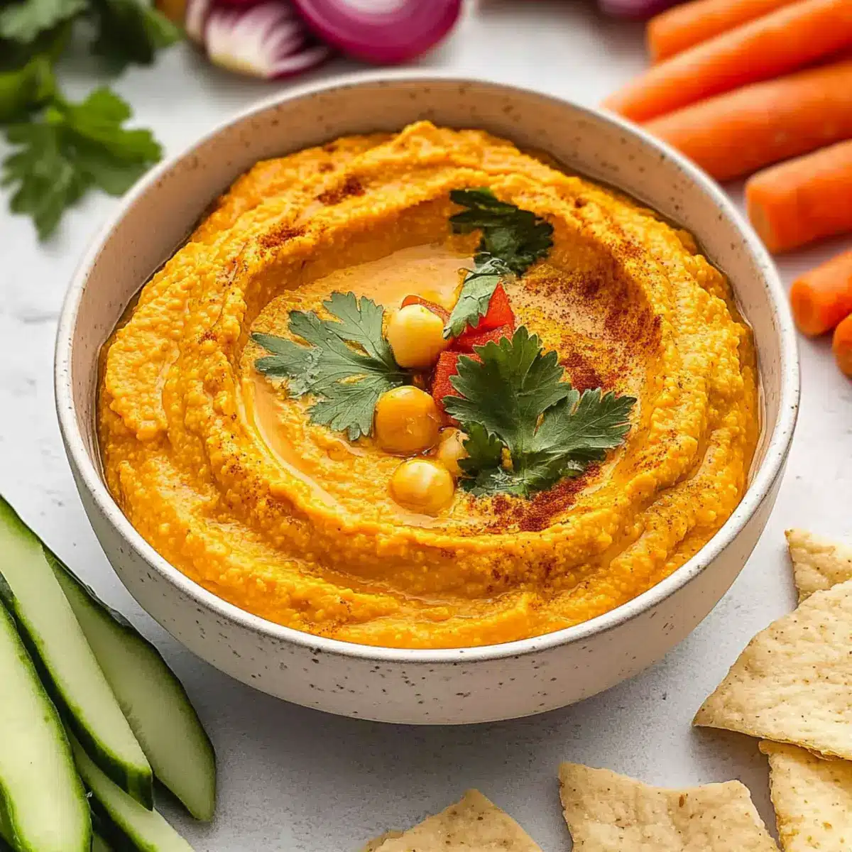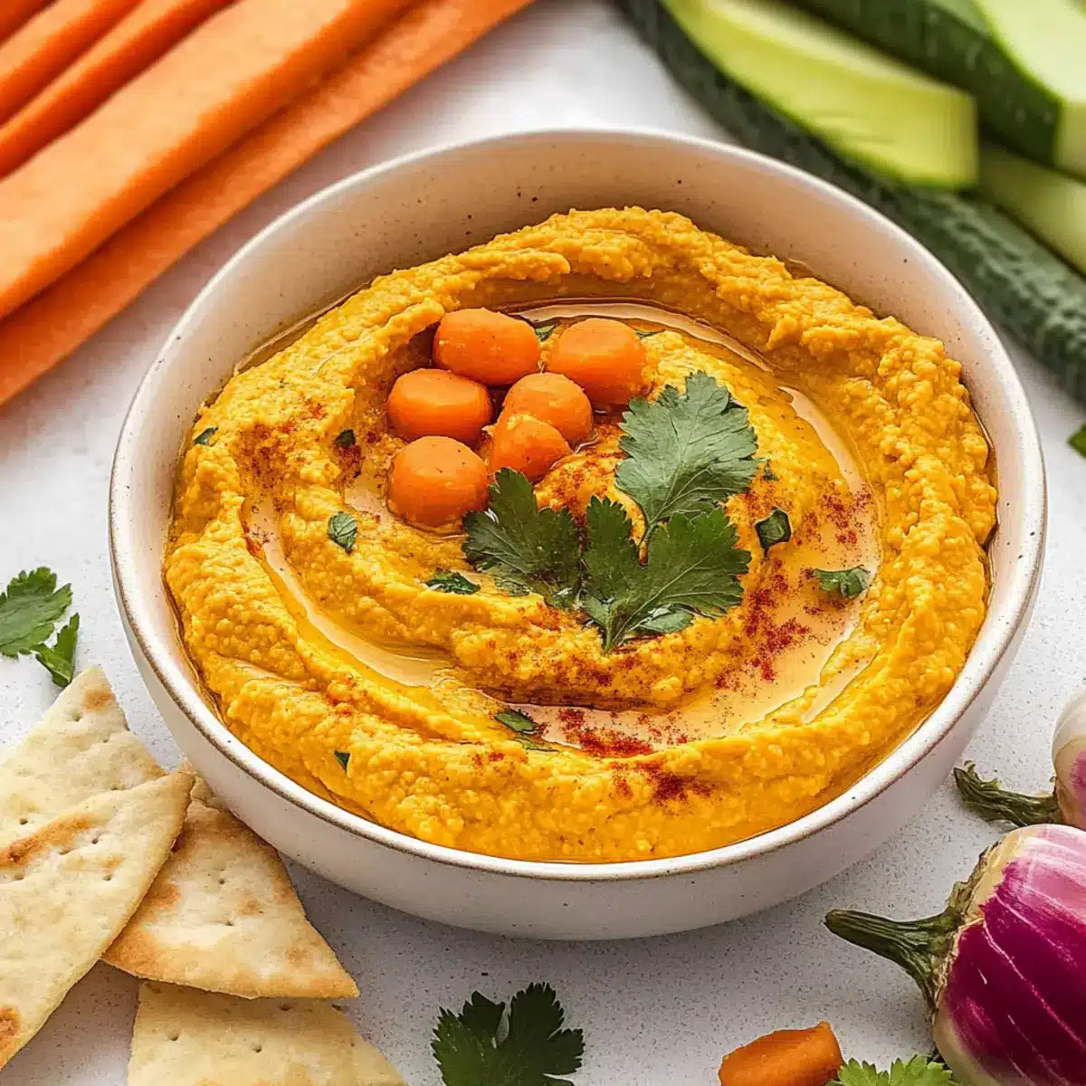 • Veggies & Pita Chips – Provide crunch and texture variety, making the perfect accompaniment to your Roasted Carrot Hummus.