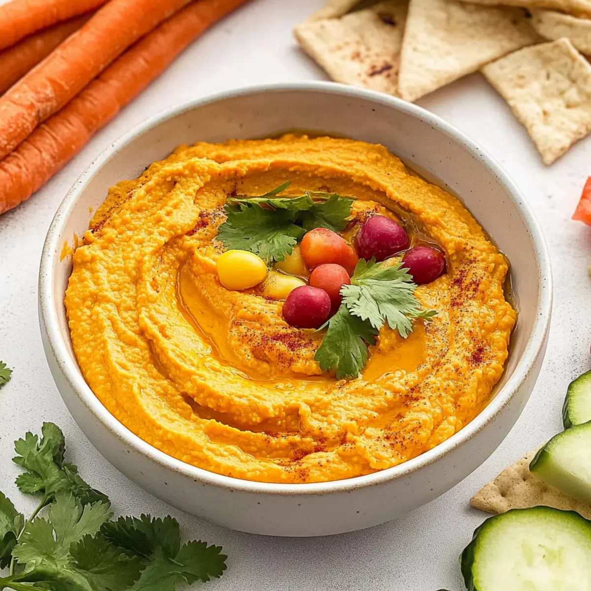 As I pulled open the oven door, a wave of warmth and the scent of caramelizing carrots wrapped around me like a cozy hug. This Roasted Carrot Hummus isn’t just another dip; it’s a creative twist on the beloved classic that elevates your appetizer game with its vibrant orange hue and irresistibly sweet flavor. Not only is this recipe a breeze to whip up, but it also embraces customization, catering to vegetarian and gluten-free lifestyles without skimping on taste. The earthy sweetness of roasted carrots perfectly balances the creamy chickpeas, making it a delightful option for gatherings or a simple weeknight snack. Ready to impress your friends with this unique dip? Let’s dive into the delicious details!