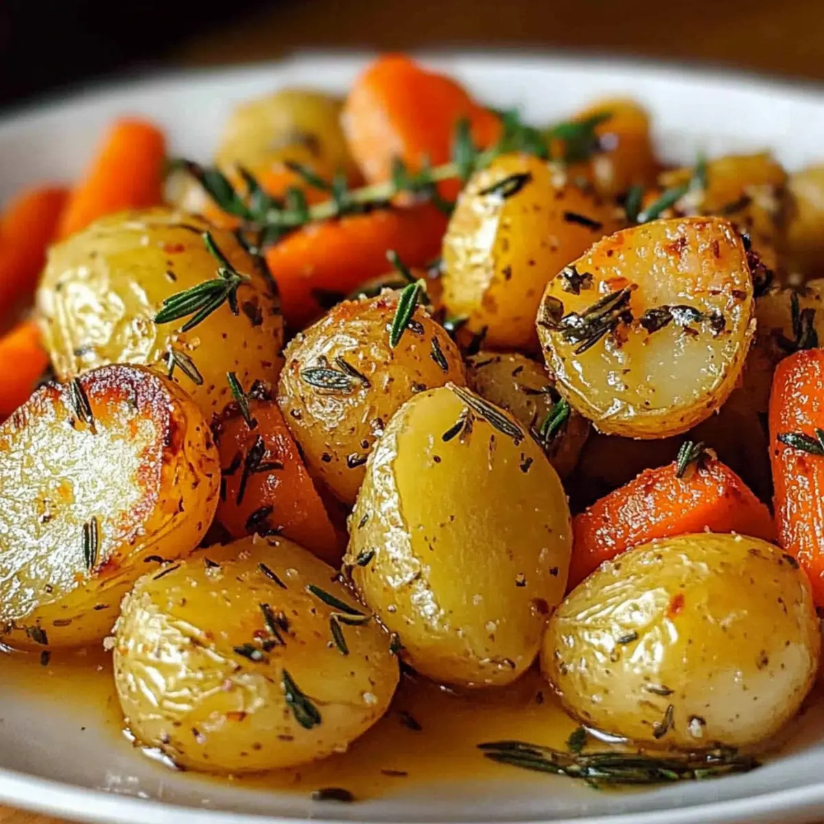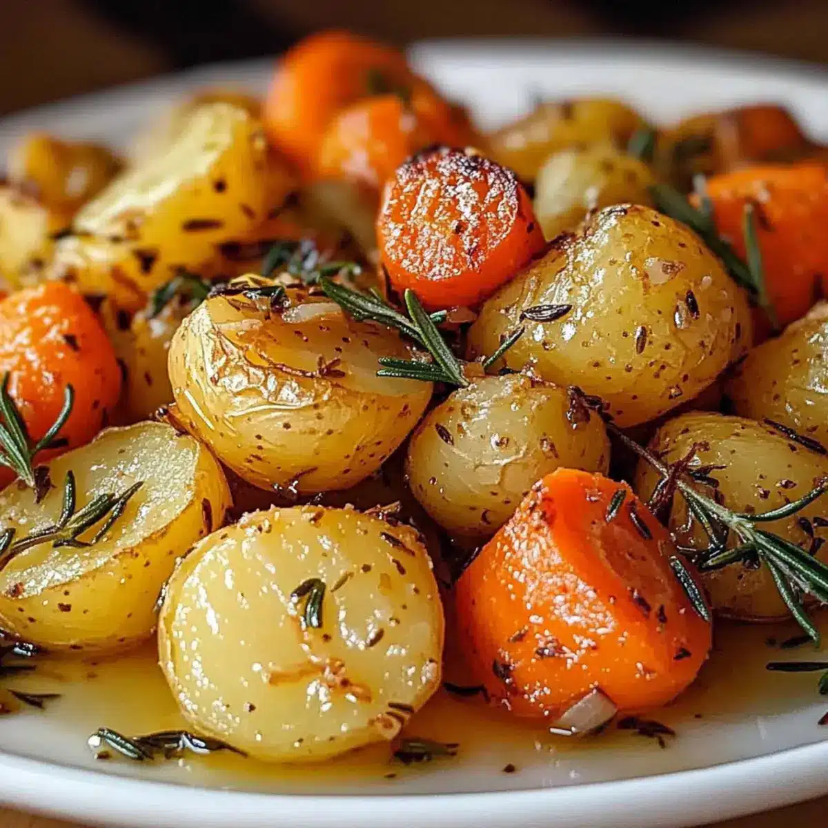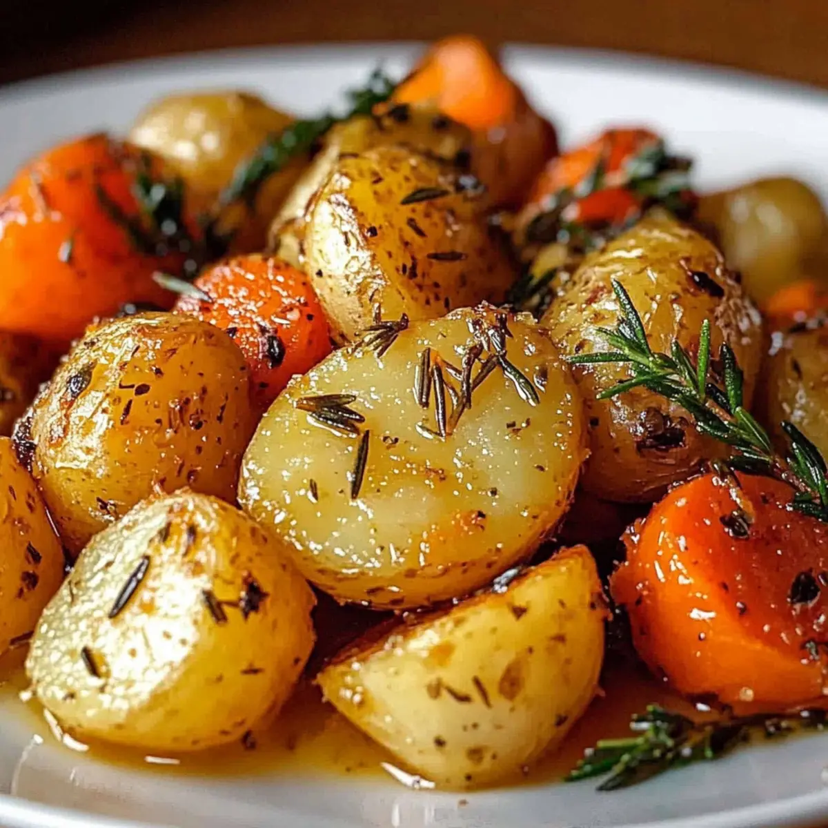 Enjoy crafting this delightful side dish that celebrates roasted potatoes, carrots, and herbs in every bite!