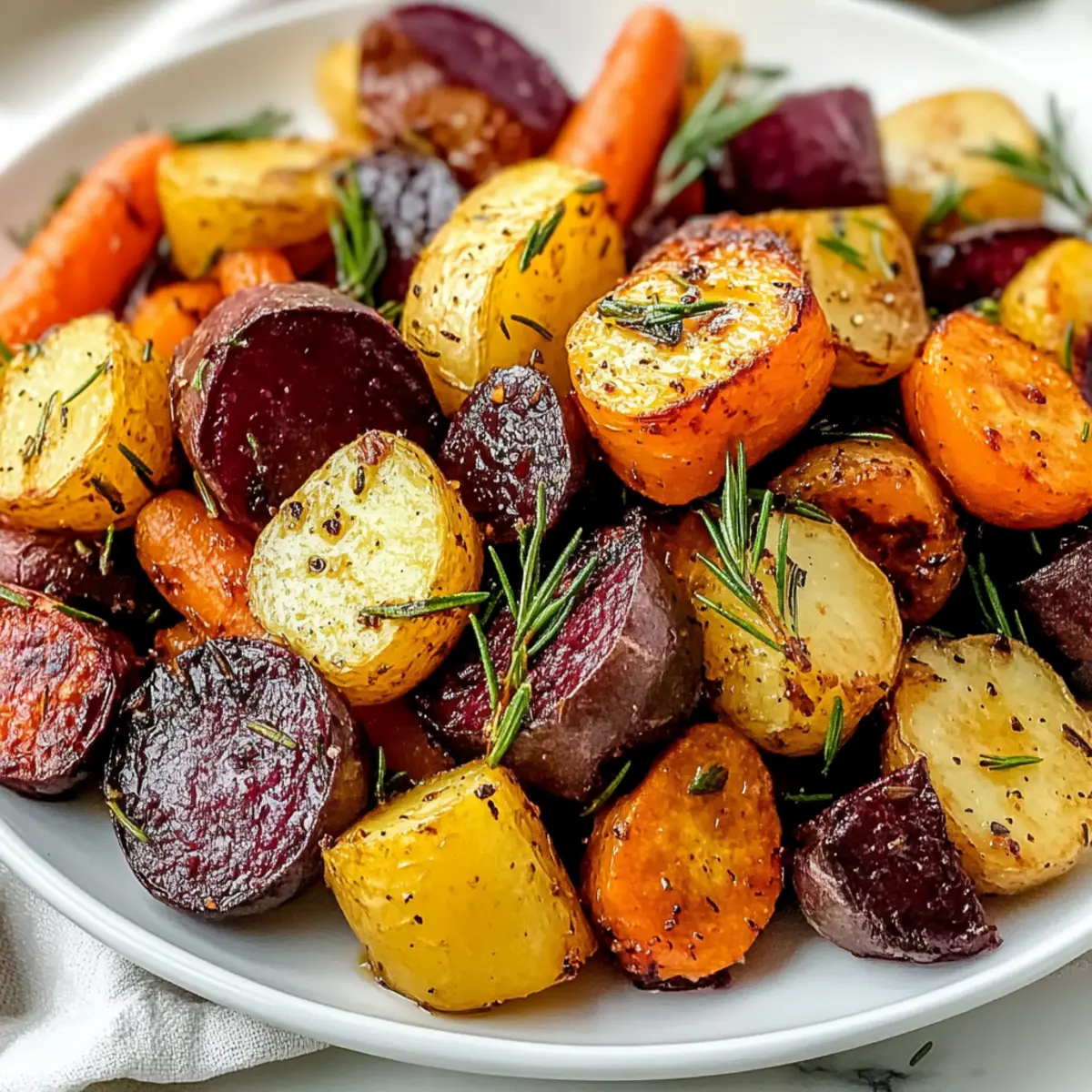 These roasted root vegetables are perfect for meal prep enthusiasts! You can wash, peel, and chop the vegetables up to 24 hours in advance, storing them covered in the refrigerator to maintain their freshness. Just keep in mind that cutting them into uniform pieces (about 1½ to 2 inches) ensures they roast evenly and achieve that delightful caramelization. When you’re ready to serve, toss the prepped vegetables with olive oil, salt, and spices right before roasting to enhance their flavor. Roast as directed, and you’ll enjoy just as delicious and comforting results with minimal effort, making busy weeknights a breeze!