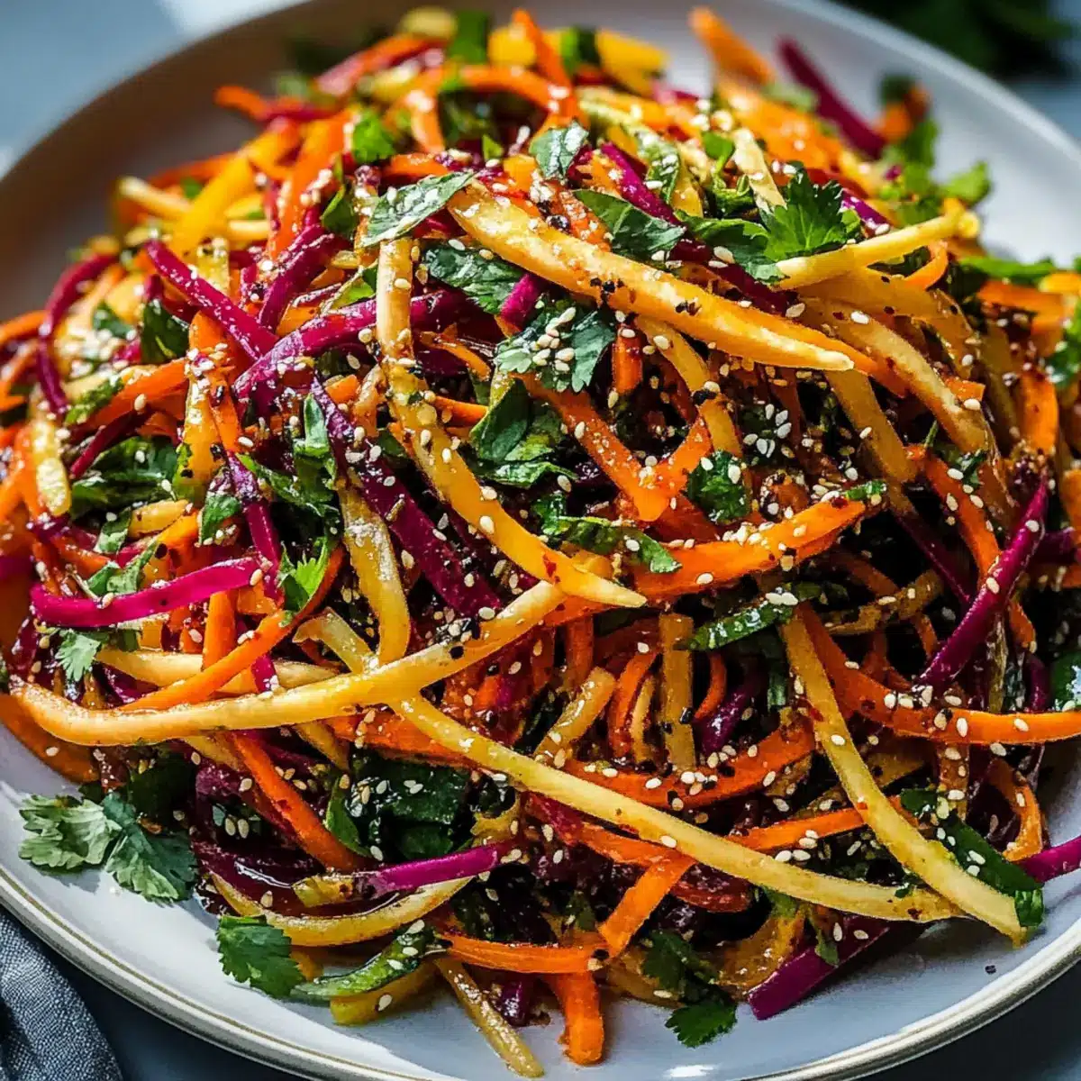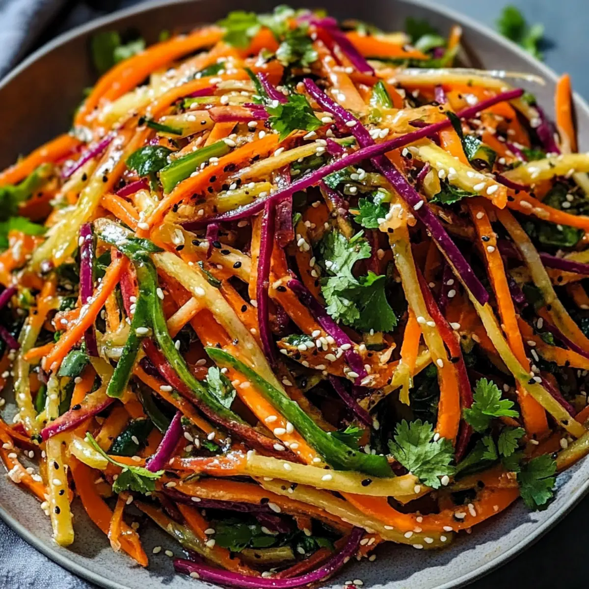Pre-chill Ingredients: Ensure all salad ingredients, especially carrots, are cold before combining. This enhances freshness and flavor in your Shaved Rainbow Carrot Sesame Salad.