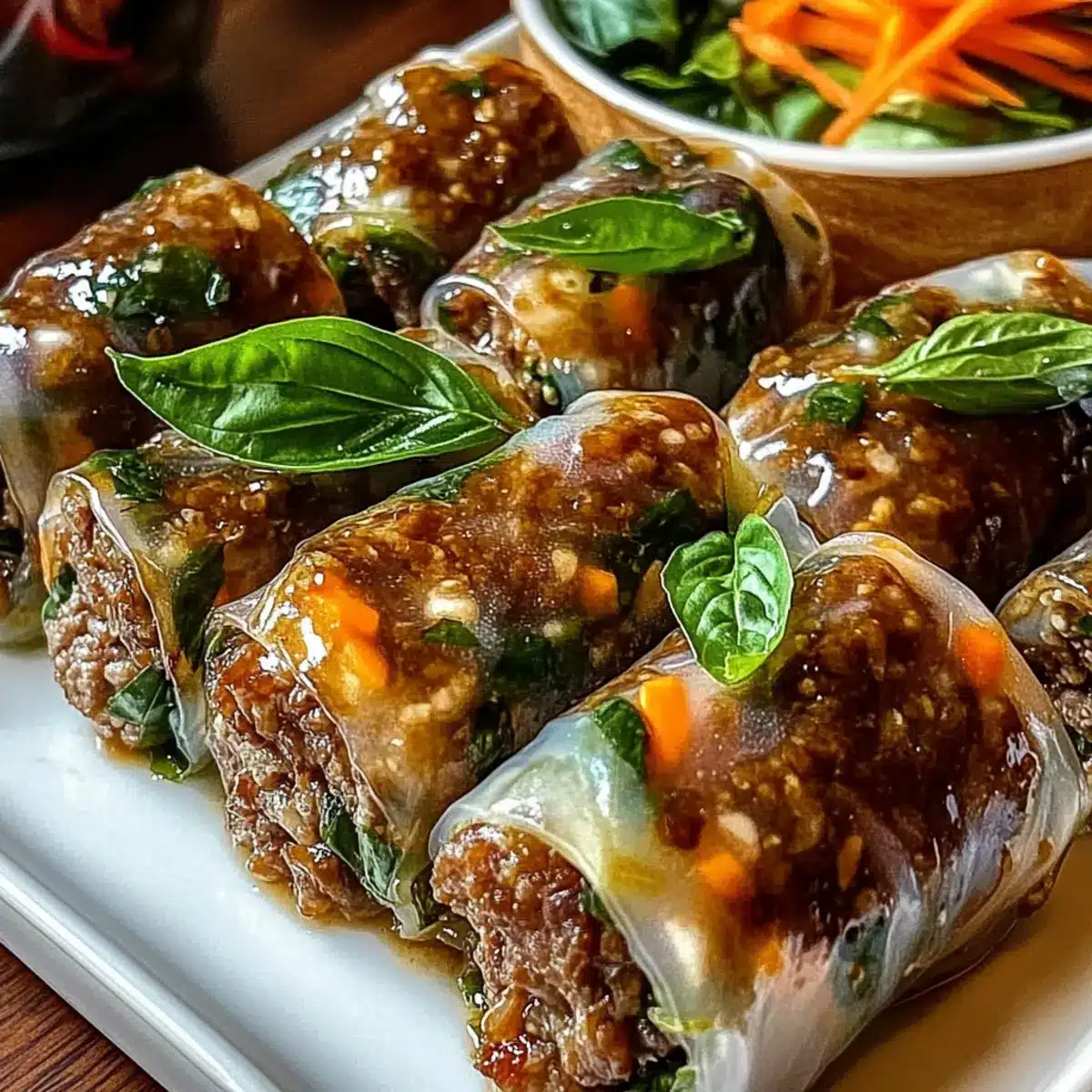The first bite of a Thai street food favorite takes me back to bustling markets filled with vibrant colors and enticing aromas. Today, I’m excited to share my version of Thai Basil Beef Rolls—quick, healthy, and absolutely customizable. These delicious rolls wrap savory lean beef around a medley of crisp vegetables, all tied together with fragrant basil in delicate rice paper. Perfect for warm-weather meals, office lunches, or impressing guests at your next gathering, you can whip these up in under 30 minutes! Plus, they’re low-calorie and allow you to play with flavors and ingredients to suit your taste. Curious to learn how to create these delightful rolls right in your kitchen? Let’s dive into the recipe!