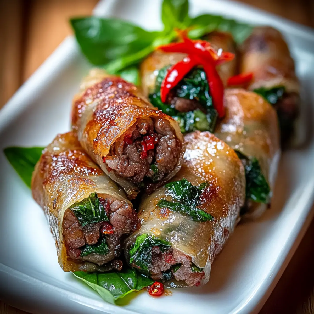 Absolutely! A delicious vegetarian version can be achieved by replacing the ground beef with a mixture of sautéed mushrooms and tofu. Season it similarly with garlic, soy sauce, and Thai basil for a captivating flavor that rivals the original! Just ensure your wrappers are free of egg if you’re adhering to a vegan diet.