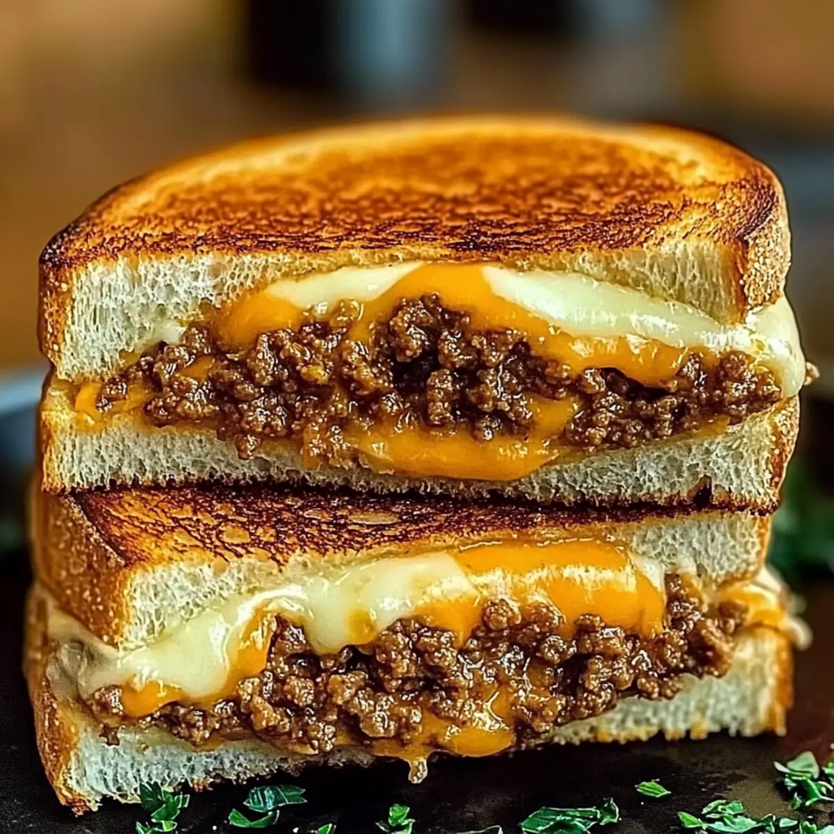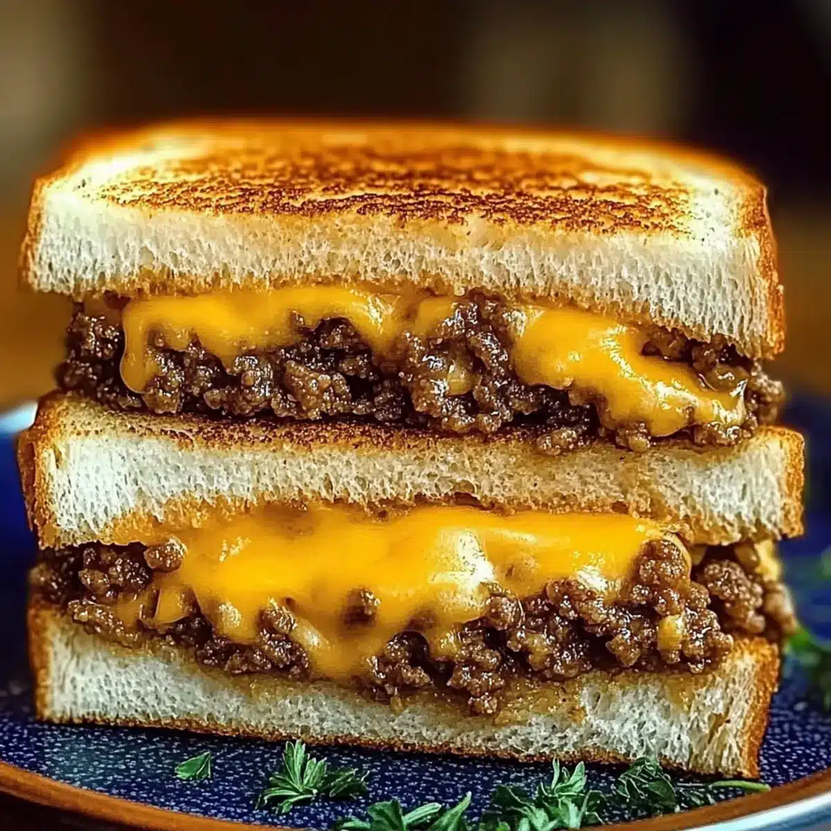 Once both sides are perfectly toasted and the cheese has melted to creamy perfection, remove the sandwich from the skillet. Let it rest for a minute before slicing it in half. Serve your Ultimate Cheesy Ground Beef Melt warm, and consider garnishing with freshly chopped parsley for a pop of color and flavor!
