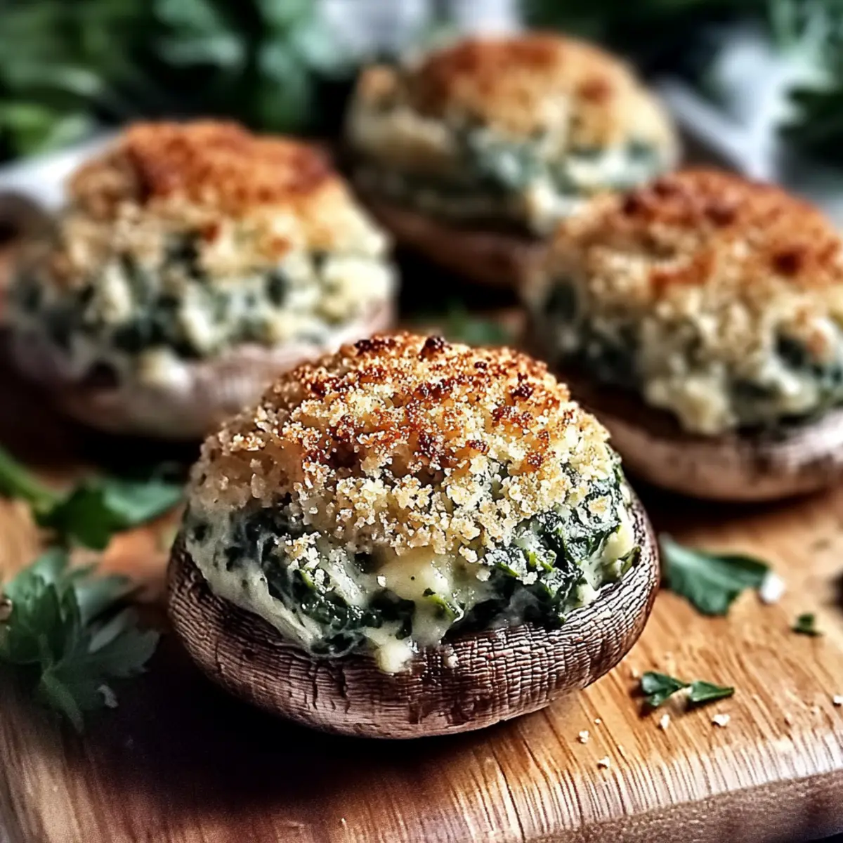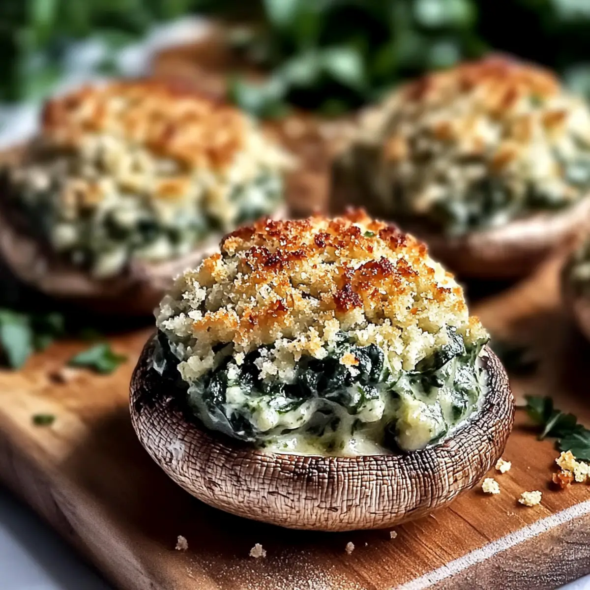 Irresistible Taste: These stuffed mushrooms boast a rich, savory flavor that delights every palate, combining the classic tastes of garlic, cheese, and fresh spinach.